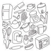 Zdjęcie "Zestaw narzędzi kuchennych bazgroły. Ręcznie rysowany sprzęt kuchenny. Linie ikona narzędzi kuchennych i naczyń kuchennych. Ilustracja wektora na białym tle. izolowane elementy konstrukcyjne i dekoracyjne" może być wykorzystywane do celów osobistych i komercyjnych zgodnie z warunkami zakupionej licencji Royalty-free. Obraz jest dostępny do pobrania w jakości wysokiej rozdzielczości do 5760x3840.
