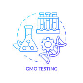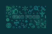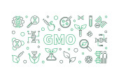 Pojęcia słowa GMO ciemnozielony sztandar. Genetycznie zmodyfikowany organizm. Infografika z ikonami na tle koloru. Odizolowana typografia. Ilustracja wektora z tekstem. Używana czcionka Arial-Black