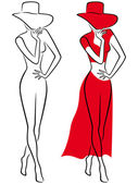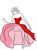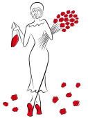 Pani w długi czerwony sukni z czerwonych róż odchodzi