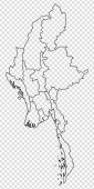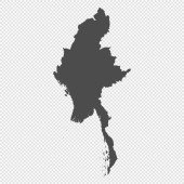 Czysta mapa Myanmaru. Mapa miasteczek Myanmar. Wysoka szczegółowa mapa wektorów szarości Republiki Związku Myanmar na przejrzystym tle. Wektor giełdowy. EPS10.