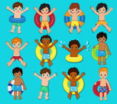 Zdjęcie "Dzieci na plaży, gry wodne, pływanie, letnie wakacje na plaży. Dzieci pływają i bawią się w ilustracje wektorowe. Chłopcy i dziewczęta odpoczywają na plaży" może być wykorzystywane do celów osobistych i komercyjnych zgodnie z warunkami zakupionej licencji Royalty-free. Obraz jest dostępny do pobrania w jakości wysokiej rozdzielczości do 5760x3840.