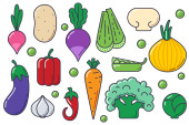 Zdjęcie "Zestaw świeżych warzyw i ziół. Produkty spożywcze dla zdrowego stylu życia: marchew, pomidory, cebula, czosnek, buraki, papryka, groszek zielony, rzodkiewki, koperek, pomidory, bazylia. Ilustracja wektora. " może być wykorzystywane do celów osobistych i komercyjnych zgodnie z warunkami zakupionej licencji Royalty-free. Obraz jest dostępny do pobrania w jakości wysokiej rozdzielczości do 5760x3840.