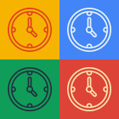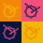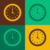 Pop art Zegar i ikona procent zniżki izolowane na tle koloru. Wektor