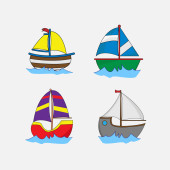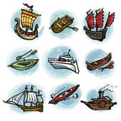 Zestaw różnego rodzaju łodzi i statków odizolowanych ilustracji