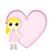 Little cute blondynka dziewczyna w różowej sukience z białymi kropkami polka