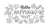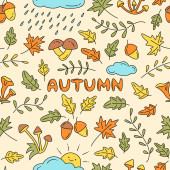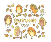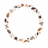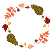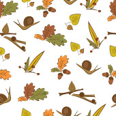 Okrągły jesienny wzór ze ślimakiem, stożkiem, żołędziem, liściem. Izolowana ilustracja z pustym miejscem na tekst.