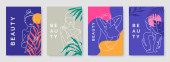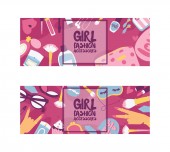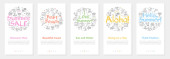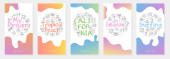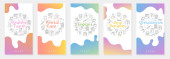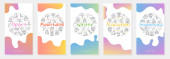 Kolekcja kobiet moda pionowe ulotki z kolorowym gradientu i liniowej czarnej ilustracji. Konstrukcja banera dla aplikacji mobilnej o płynnych kształtach