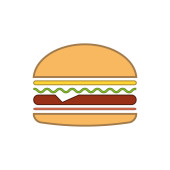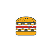 Burger płaskie logo i projekt ilustracji ikony wektor