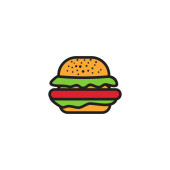 Burger płaskie logo i projekt ilustracji ikony wektor