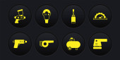 Symbole militarne na czarnych przyciskach na żółtym tle