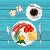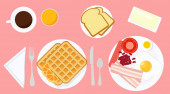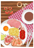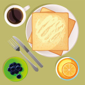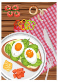 Top view żywności, smażone jajko na toście z placemat na białym tle ilustracji