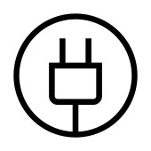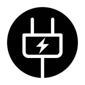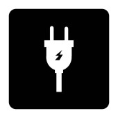 Pozwolenie na korzystanie z gniazdka elektrycznego. Ładunek dozwolony. Sylwetka gniazdka elektrycznego w okręgu. Wektor.