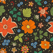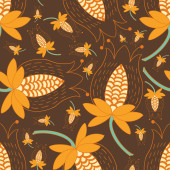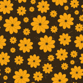 Żółte, pomarańczowe i brązowe kwiaty vintage bezszwowe tło