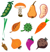 Zdjęcie "Autumn stickers set in fruits and vegetables shape." może być wykorzystywane do celów osobistych i komercyjnych zgodnie z warunkami zakupionej licencji Royalty-free. Obraz jest dostępny do pobrania w jakości wysokiej rozdzielczości do 5760x3840.