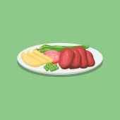 Zdjęcie "Stek wołowy z warzywami Ilustracja wektor " może być wykorzystywane do celów osobistych i komercyjnych zgodnie z warunkami zakupionej licencji Royalty-free. Obraz jest dostępny do pobrania w jakości wysokiej rozdzielczości do 5760x3840.