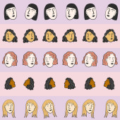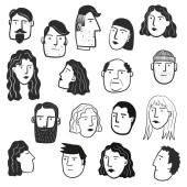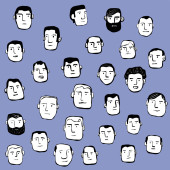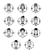 Rysunki białych mężczyzn z czarnymi włosami i detalami.