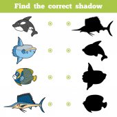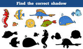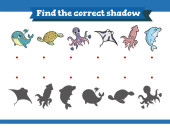 Dziecięca gra edukacyjna o nazwie "znaleźć odpowiedni cień" z mieszkańcami morza. Ilustracja wektora