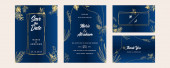 Premium elegancki złoty niebieski wzór zaproszenia ślubne