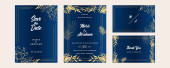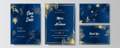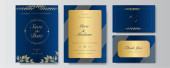 Premium elegancki złoty niebieski wzór zaproszenia ślubne