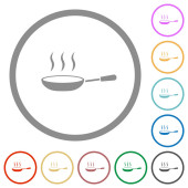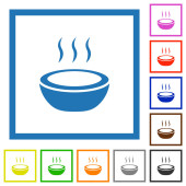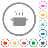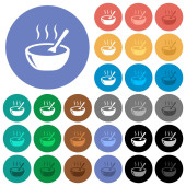 Parująca miska zupy z łyżką wielokolorowe płaskie ikony na okrągłych tłach. W zestawie białe, jasne i ciemne ikony dla efektów poduszki i aktywnego statusu oraz odcienie bonusowe.