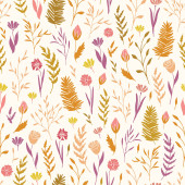Naturalny elegancki boho kwiat bezszwowy wzór w ditzy stylu dziki kwiat. Ręcznie rysowany organiczny odcisk mody botanicznej. Nowoczesny lato natura ogród kwitną w modnym rocznika kraju domekcore kolor.