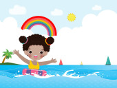 Zdjęcie "Ilustracja z uroczą uśmiechający się pływanie w morzu / basen" może być wykorzystywane do celów osobistych i komercyjnych zgodnie z warunkami zakupionej licencji Royalty-free. Obraz jest dostępny do pobrania w jakości wysokiej rozdzielczości do 5760x3840.