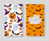 Jasny pocztówka na Halloween w stylu cartoon. wektor
