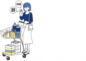 Sztuka klipu kobiety obsługującej smartfona podczas pchania koszyka