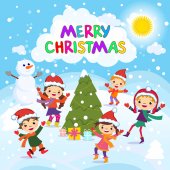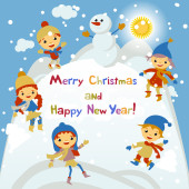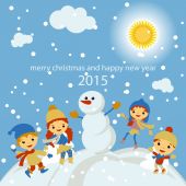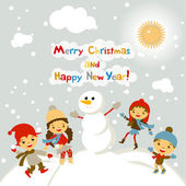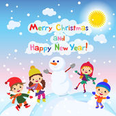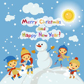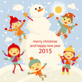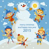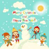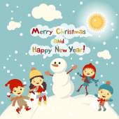 Koncepcja kreskówka tło zima. Ładny bałwana w wektor dzieci