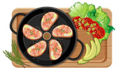 Widok góry śniadanie na drewnianej tacy ilustracji