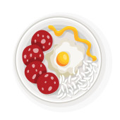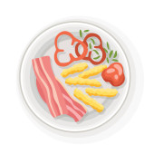Zdjęcie "Śniadanie lub lunch widok z góry. Pyszne, zdrowe jedzenie na porcelanowym naczyniu. Klasyczne obfite śniadanie. Ładnie serwowane jedzenie na białym talerzu" może być wykorzystywane do celów osobistych i komercyjnych zgodnie z warunkami zakupionej licencji Royalty-free. Obraz jest dostępny do pobrania w jakości wysokiej rozdzielczości do 5760x3840.