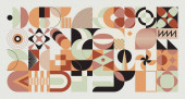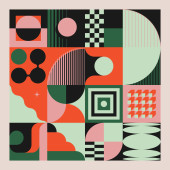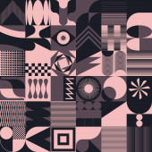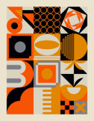 Sztuka dekoracyjna inspirowana ruchem Mid Century wykonana z abstrakcyjnych kształtów geometrycznych i odważnych form. Cyfrowa grafika do plakatu, okładki, sztuki, prezentacji, druku, tkaniny, tapety itp..