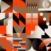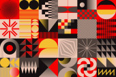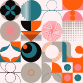 Zdjęcie "Sztuka dekoracyjna inspirowana ruchem Mid Century wykonana z abstrakcyjnych kształtów geometrycznych i odważnych form. Cyfrowa grafika do plakatu, okładki, sztuki, prezentacji, druku, tkaniny, tapety itp.." może być wykorzystywane do celów osobistych i komercyjnych zgodnie z warunkami zakupionej licencji Royalty-free. Obraz jest dostępny do pobrania w jakości wysokiej rozdzielczości do 5760x3840.