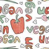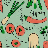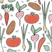 Zdjęcie "Ręcznie rysowane bezszwowe wzór ilustracji zdrowych warzyw organicznych, pomidor marchew por rzodkiew bakłażan kalafior pszczoły. Rynek naturalne warzywa żywności dieta w miękkich pastelowych kolorach." może być wykorzystywane do celów osobistych i komercyjnych zgodnie z warunkami zakupionej licencji Royalty-free. Obraz jest dostępny do pobrania w jakości wysokiej rozdzielczości do 5760x3840.