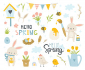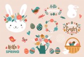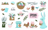 Zdjęcie "Ręcznie rysowany zestaw sprężynowy. Motyle, biedronka, malowane jajka, kosz, króliki, marchewki, liternictwo, kurczak, kura, kwiaty wiśni. Koncepcja sezonu wiosennego, Wielkanoc, natura." może być wykorzystywane do celów osobistych i komercyjnych zgodnie z warunkami zakupionej licencji Royalty-free. Obraz jest dostępny do pobrania w jakości wysokiej rozdzielczości do 5760x3840.