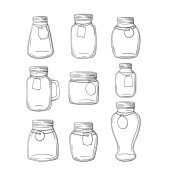 Szklany słoik, ikony linii słoika glinianego, ilustracja wektora