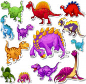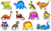 Zestaw naklejek z różnych dinozaurów ilustracji kreskówki