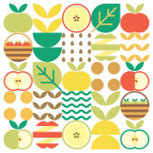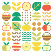 Zdjęcie "Jabłko ramka abstrakcyjne dzieło sztuki. Projektowanie ilustracji kolorowe jabłko wzór, liście i symbole geometryczne w minimalistycznym stylu. Całe owoce, pokrojone i podzielone. Prosty wektor płaski na białym tle." może być wykorzystywane do celów osobistych i komercyjnych zgodnie z warunkami zakupionej licencji Royalty-free. Obraz jest dostępny do pobrania w jakości wysokiej rozdzielczości do 5760x3840.