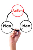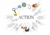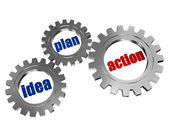 tekst planu, Akcja, wynik - słowa w 3d srebrne koła zębate