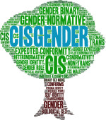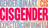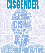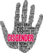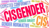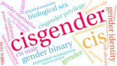 Cisgender słowo chmura na białym tle.