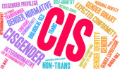 Cis słowo chmura na białym tle.