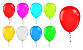 zestaw realistycznych balonów latających izolowanych lub wielobarwnych balonów helowych lub grupa dekoracji balonów na imprezę. Wektor eps