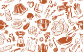 naczynia kuchenne tło, książka kucharska bezszwowy wzór, narzędzia kulinarne i materiały, ilustracja tła książki kucharskiej, karty, plakaty, banery, druki tekstylne, projektowanie stron internetowych