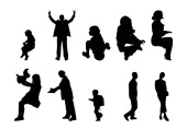 Sylwetki wektorowe, zarys sylwetek osób, rysunek konturu, sylwetka osób, Ikona Odizolowana, Sylwetka siedzących, Zestaw architektoniczny