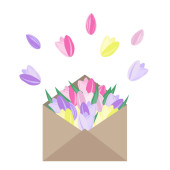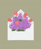 Piękne kwiaty krokusa w kopercie pocztowej. Ręcznie rysowane wektor ilustracji wzór projekt plakatu, pocztówka, baner, ulotki, zaproszenie
