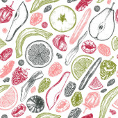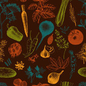 Ręcznie rysowane zioła i przyprawy rysują tło. Ręcznie szkicowany tło żywności w kolorze. Vintage aromatyczne rośliny bezszwowy wzór w szkicowanym stylu. Kuchnia przyprawy i zioła tkaniny projekt