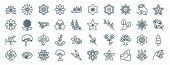 set of 40 nature icons in outline style. thin line icons such as lavender, hyacinth, dahlia, snail, wallflower, protea, rosemary, hive, peppermint, branch, acicular, hemp editable vector.