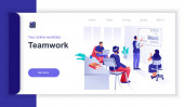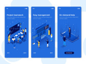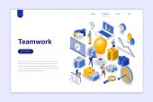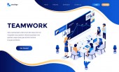 Nowoczesna, izometryczna koncepcja projektowania pracy zespołowej na stronie internetowej i mobilnej stronie internetowej. Wzór strony lądowania. Łatwy do edycji i dostosowania. Ilustracja wektora
