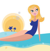 retro beach lato dziewczyna relaksu w wodzie morskiej