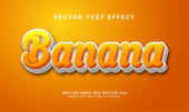 Owoce bananowe 3d edytowalny efekt tekstowy z żółtym kolorem, nadaje się do owoców tropikalnych tematyce.
